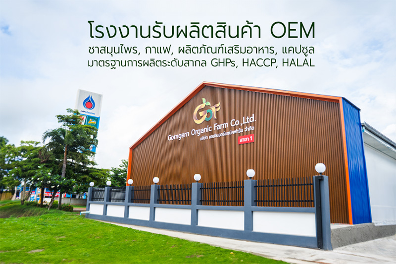 โรงงานผู้ผลิตและจำหน่ายสมุนไพรแห้ง สมุนไพรบดผง รับจ้างบดสมุนไพร อัดแคปซูล ราคาโรงงาน แปรรูปสมุนไพร-เครื่องเทศ พร้อมรับผลิต OEM ชาสมุนไพร กาแฟ ตามมาตรฐาน อย., GHPs, HACCP, HALAL มุ่งมั่นพัฒนา ยกระดับภูมิปัญญา รักษามาตรฐาน สืบสานสมุนไพรไทย ก้าวไกลสู่สากล Tel. 086-103-1560, 064-997-4775
